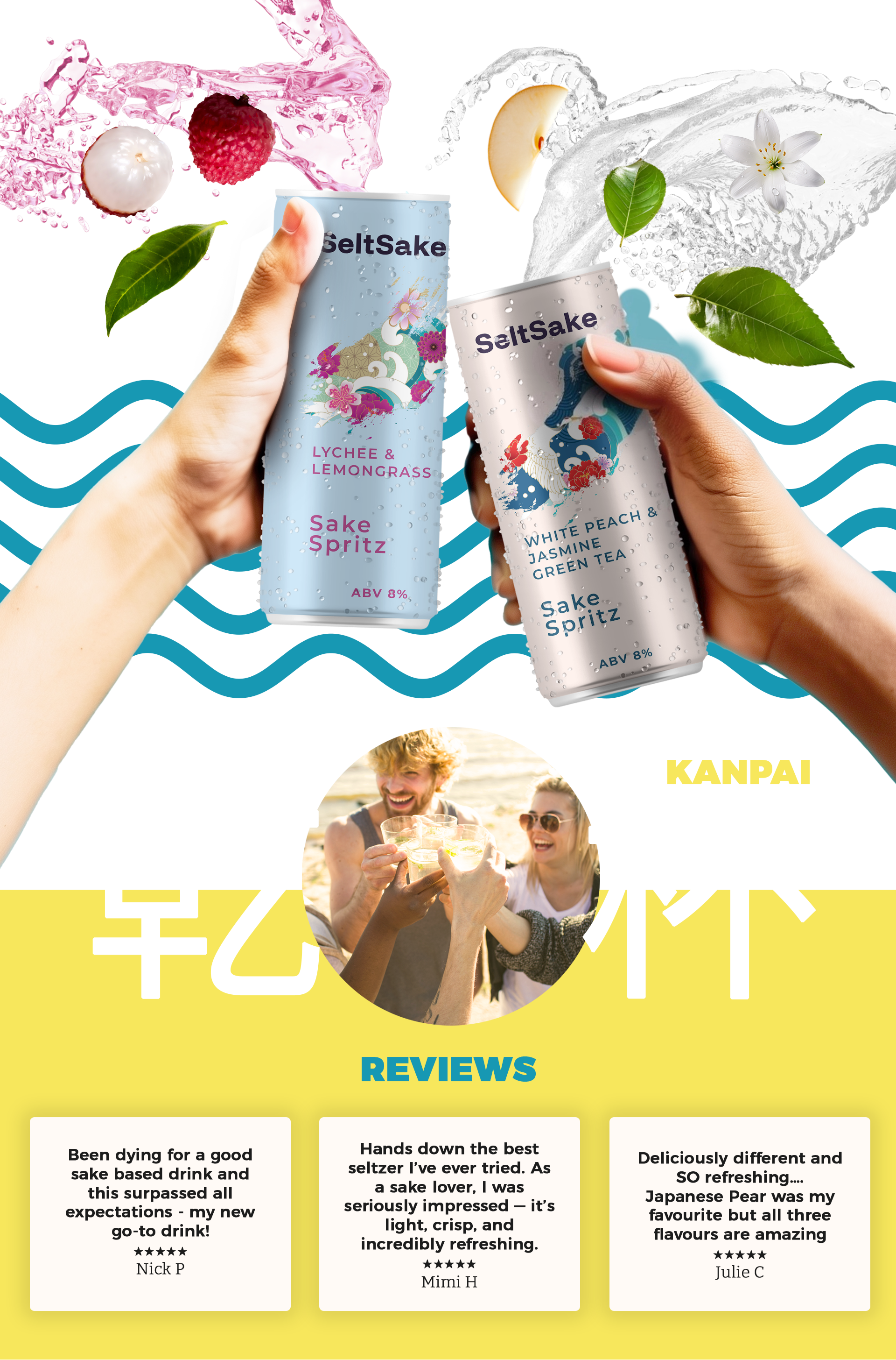 Discover our range of premium sake spritz drinks, each can crafted with 57% pure Japanese sake and natural ingredients for a refreshing, sophisticated experience.